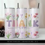 Thank You Tumbler Design, Tumbler Sublimation PNG File, Flowers Tumbler PNG, Tumbler Wrap 20 oz Skinny Tumbler PNG File – Instant Download.