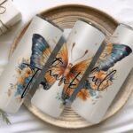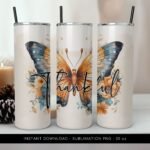Thankful Tumbler Design, Butterfly Sublimation PNG File, Flowers Tumbler PNG, Tumbler Wrap 20 oz Skinny Tumbler PNG File – Instant Download.