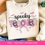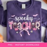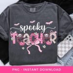 Spooky Teacher PNG, Fall season School Clipart, Preppy Halloween PNG, Pink Teacher Coquette Bow Png, Girly Teacher Doodle Png, Pumpkin PNG,