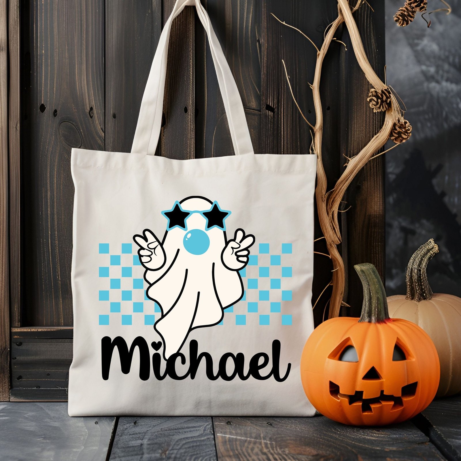 Halloween Svg, Retro Ghost Svg, Bag of Treats PNG, Custom Kids Name SVG, Halloween Cricut Svg, Halloween Cut File, Bubble Gum Ghost Svg.
