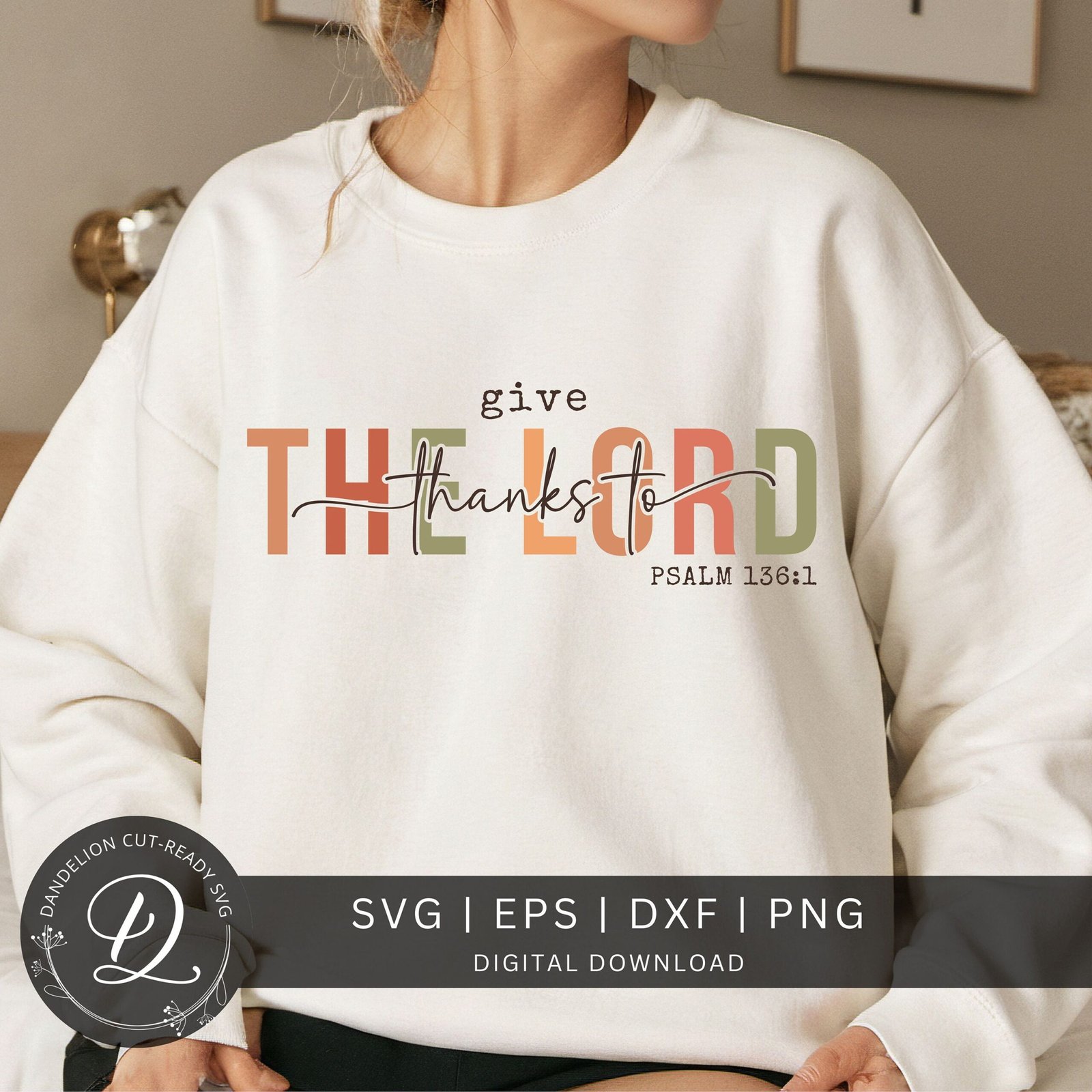 Tags: bible psalm svg, christian fall shirt, clipart vector eps, cutting machine file, dxf svg png file, give thanks cut file, religious saying svg, silhouette svg file, Sublimation PNG, thank you fall svg, thanks to the Lord, thanksgiving cricut, thanksgiving prints