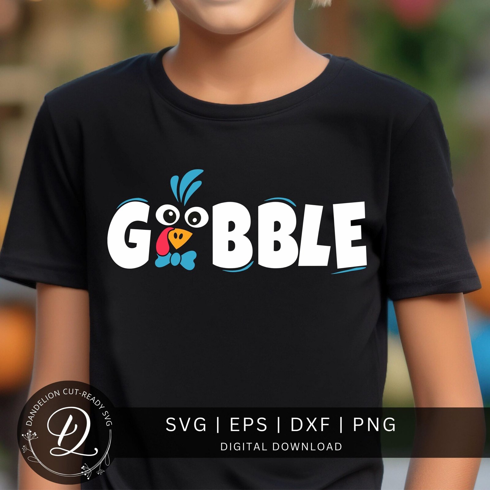 Gobble SVG, Turkey Face SVG, Thanksgiving Cricut Svg, Cute Turkey Cut File, Fall Kids Shirt PNG, Gobble Sublimation Design, Digital Download