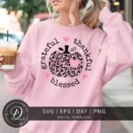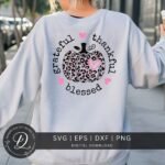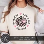 Grateful Thankful Blessed SVG, Leopard Pumpkin SVG, Cheetah Fall Shirt Svg, Thanksgiving Cut File, Pumpkin Sublimation PNG, Halloween Svg.