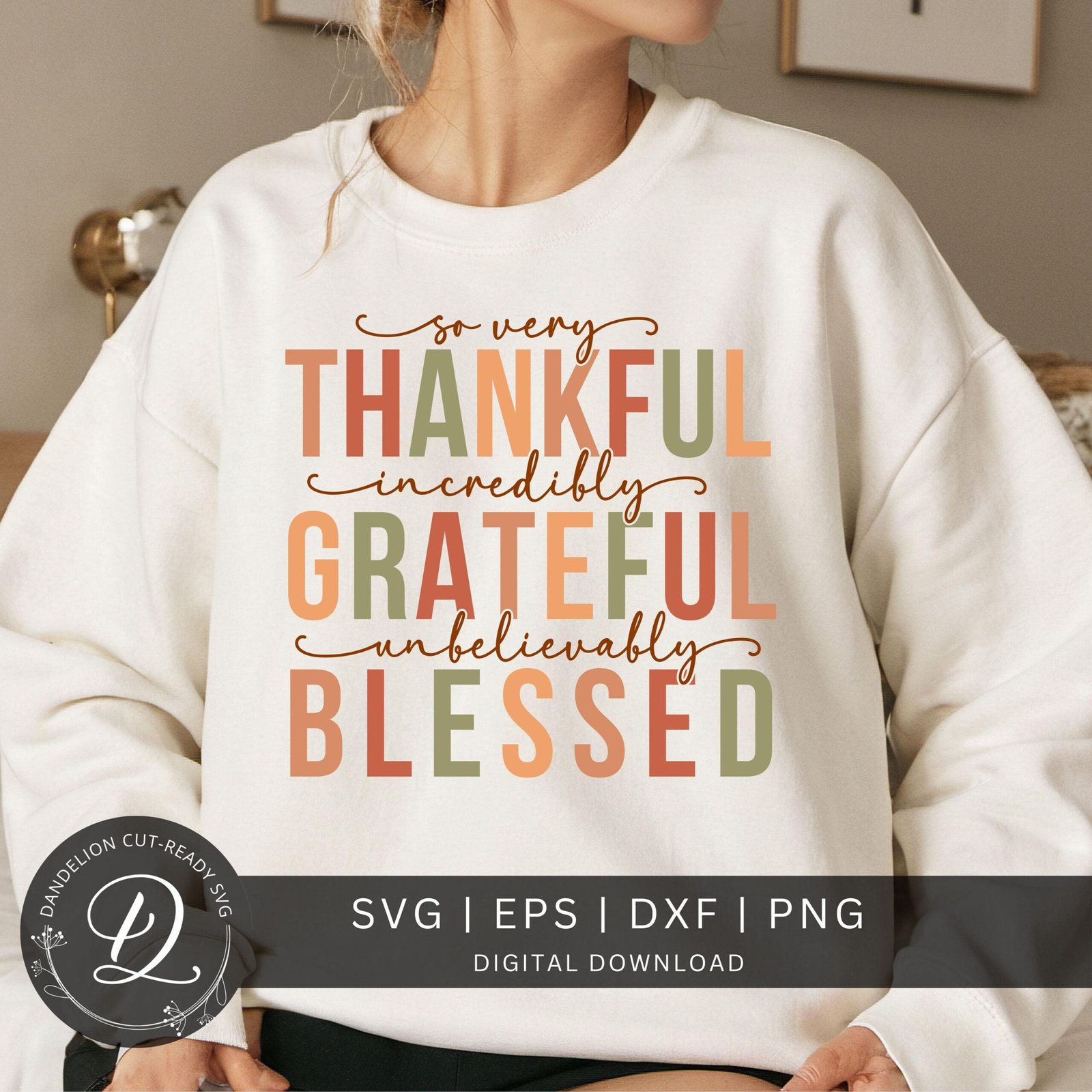 Grateful Thankful Blessed SVG, Turkey Day Svg, Give Thanks PNG, Christian Shirt Svg, Thanksgiving Sublimation, Thanksgiving Fall Sweater Svg