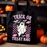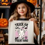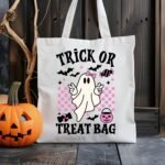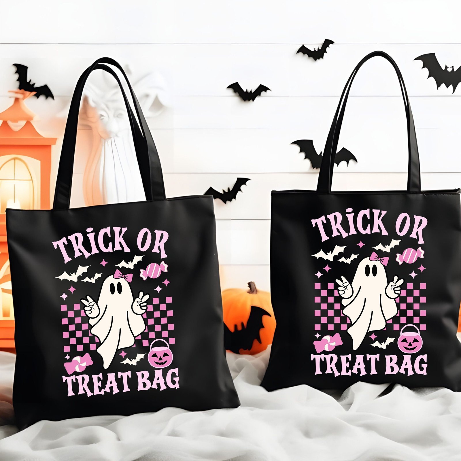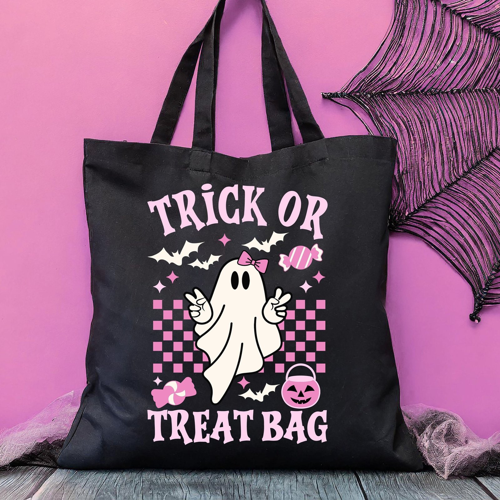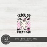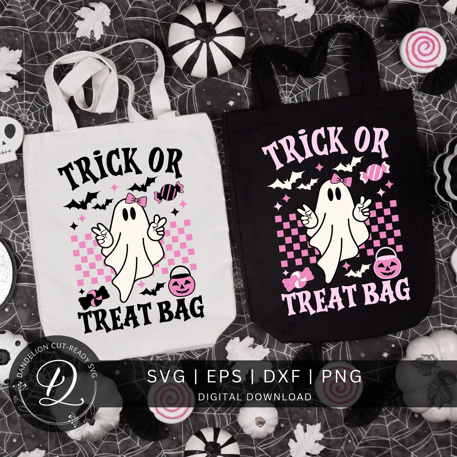 Trick or Treat Bag SVG, Kids Halloween Svg, Retro Ghost Svg, Bag of Treats PNG, Halloween Cricut Svg, Halloween Cut File, Girly Ghost Svg