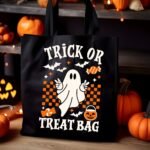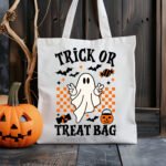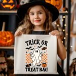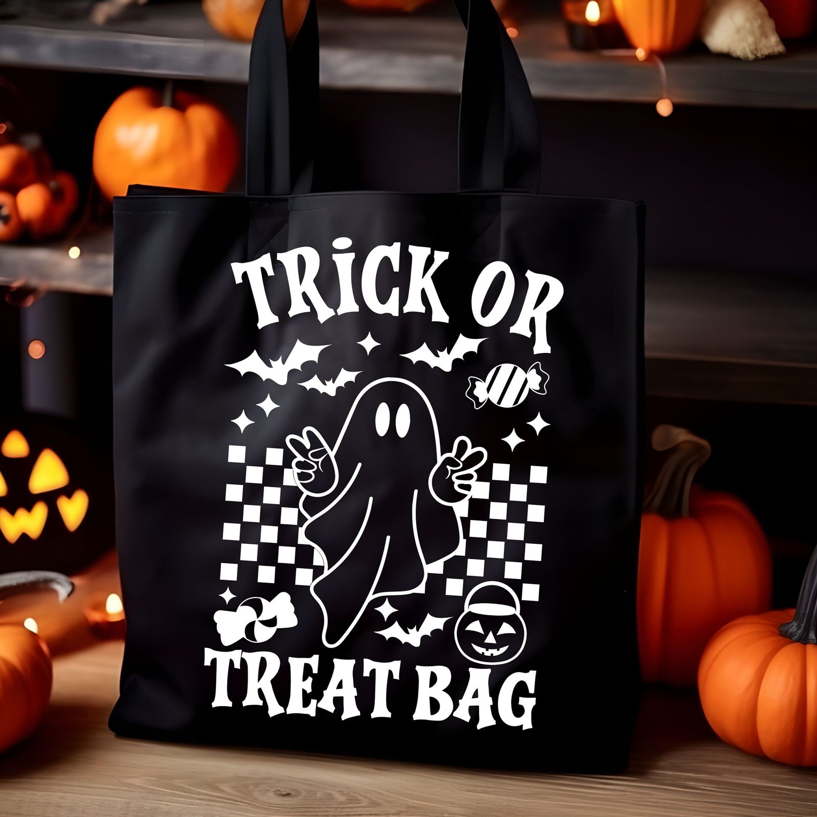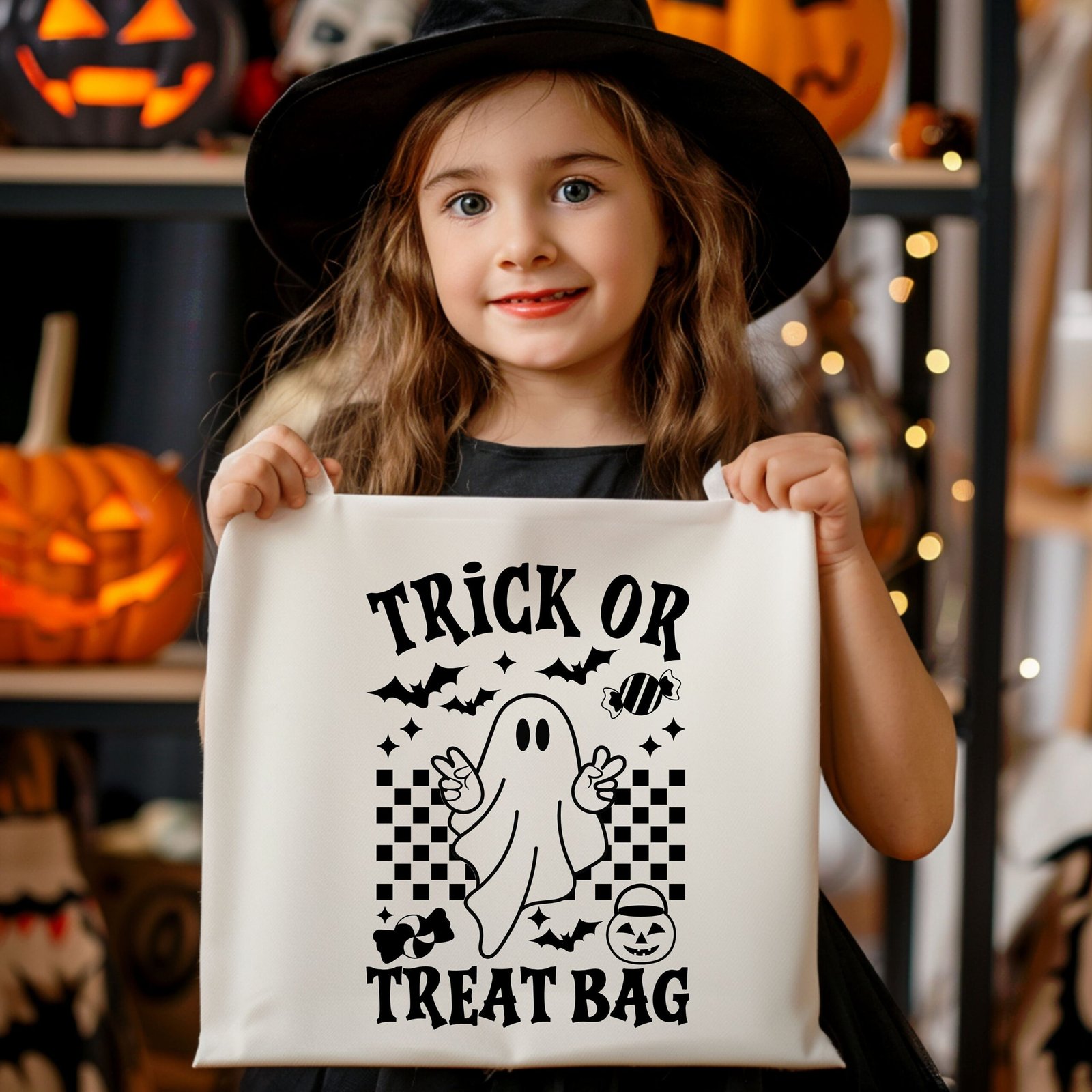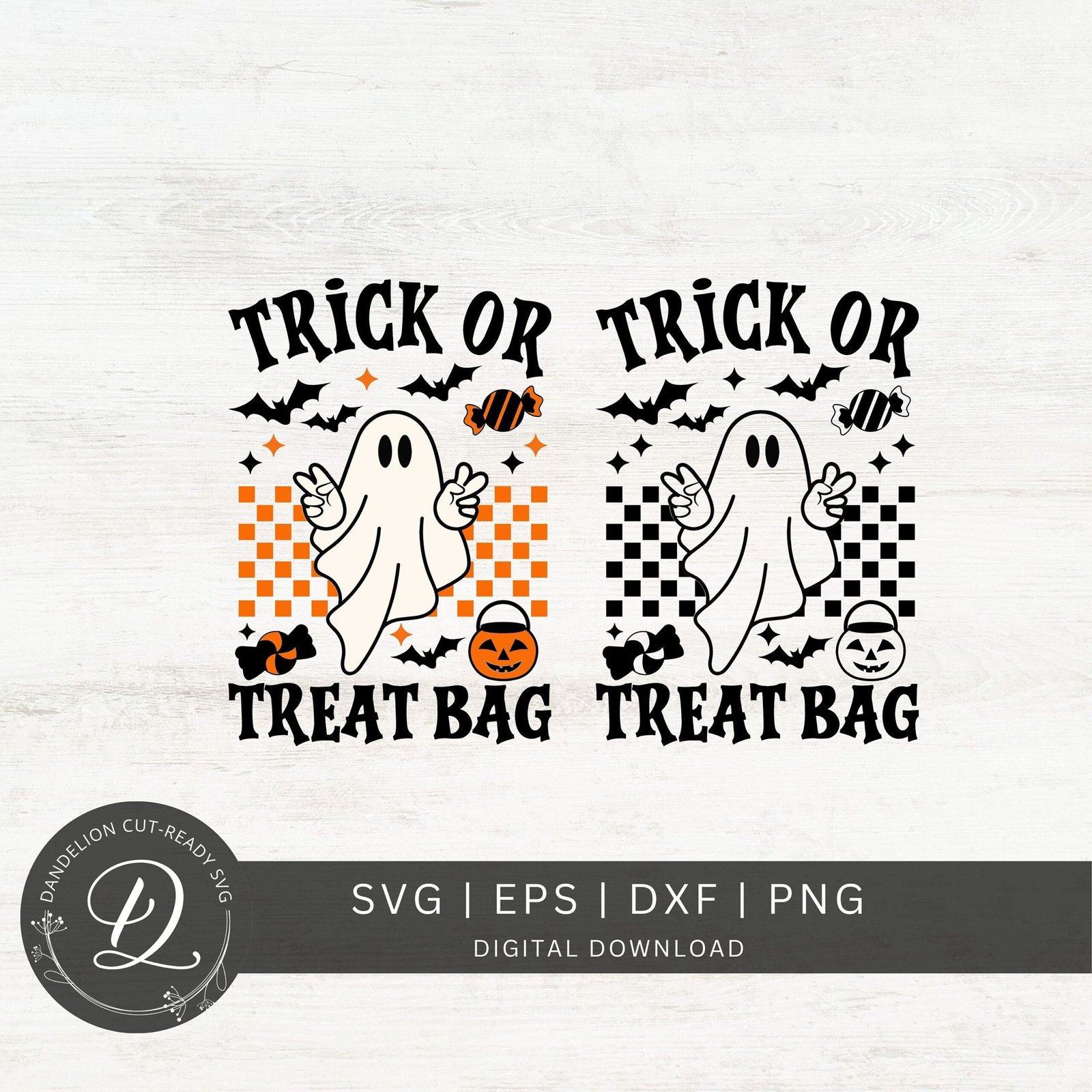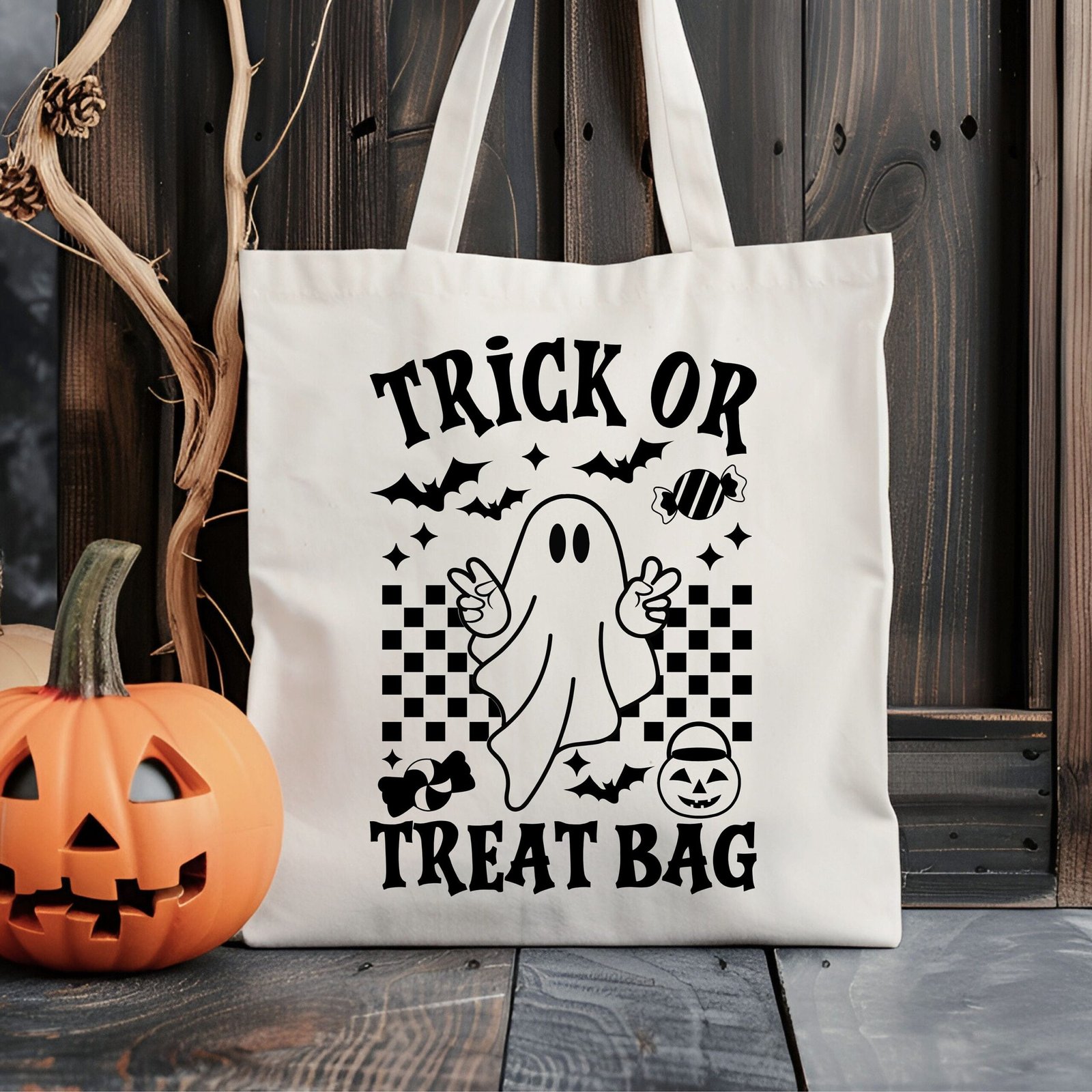 Trick or Treat Bag SVG, Kids Halloween Svg, Retro Ghost Svg, Bag of Treats PNG, Halloween Cricut Svg, Halloween Cut File, Spooky Ghost Svg